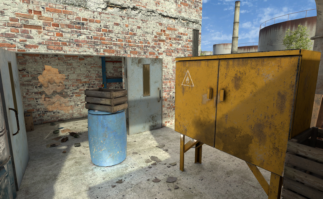 Карта предлагает динамичные бои в индустриальных руинах старой фабрики: высокая плотность укрытий, сложная вертикальность и ограниченная видимость заставляют играть агрессивно и осмотрительно.
